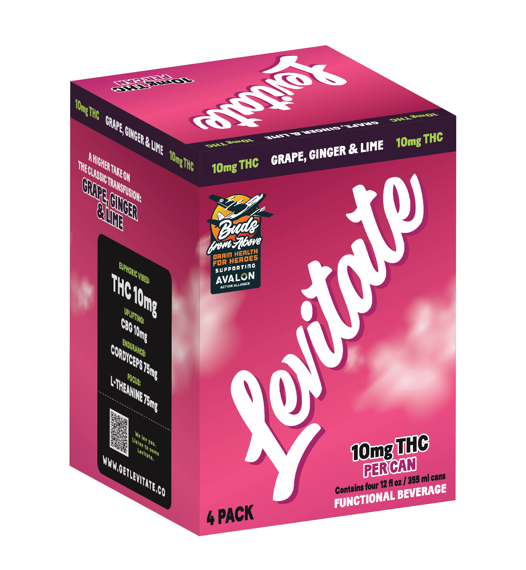 Full Case - 10 MG Levitate - Grape, Ginger & Lime (24x 12oz Cans)